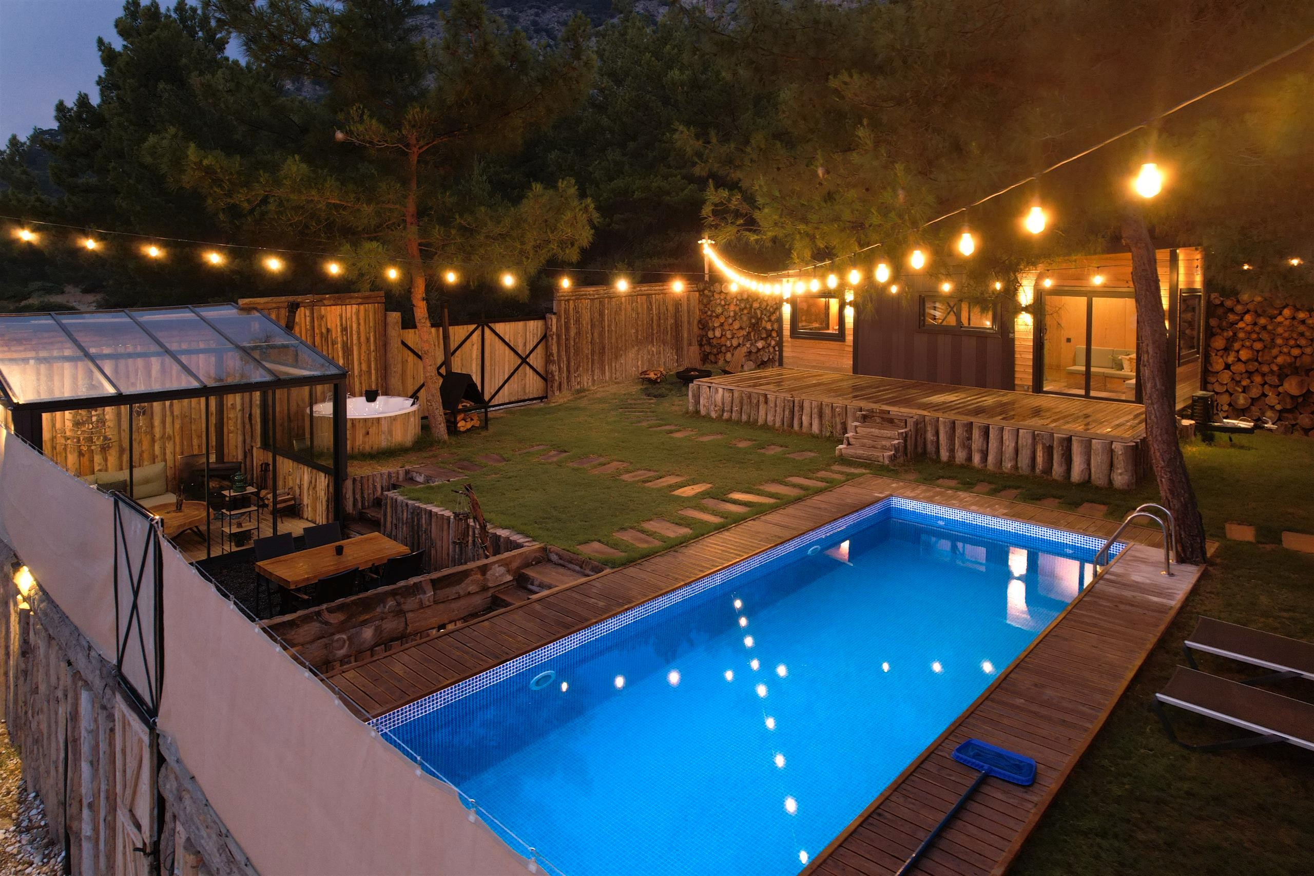 Tiny House'ların bahçesinde kendisine ait jakuzisi bulunmaktadır. Jakuziler açık alanda olmasına rağmen etrafı tam korunaklı olduğu için, isterseniz serin yaz akşamlarında, isterseniz kışın yağmur damlalarının altında özgürce doğanın içinde keyif yapabilirsiniz. Özel tasarıma sahip olan jakuzi sobalarımızın dizaynı ve kurulumu kendimize aittir. Jakuzilerin suyunun odun ateşinde yakılarak ısıtılması misafirlerimize farklı bir deneyim sunmaktadır.