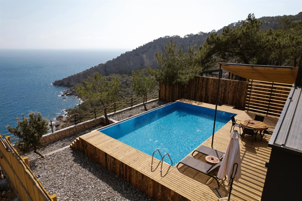 Tiny House Likya evlerinde her evin bahçesinde kendisine ait korunaklı havuzu bulunmaktadır. Doğanın içinde dağ ve deniz manzarasında havuzlarımızın sadece kendinize ait olması herkesten uzakta izole bir tatil imkanı sunmaktadır.