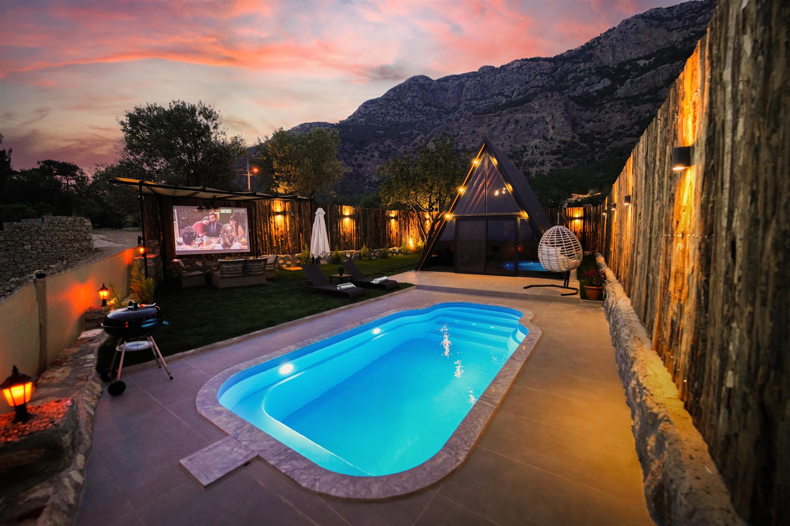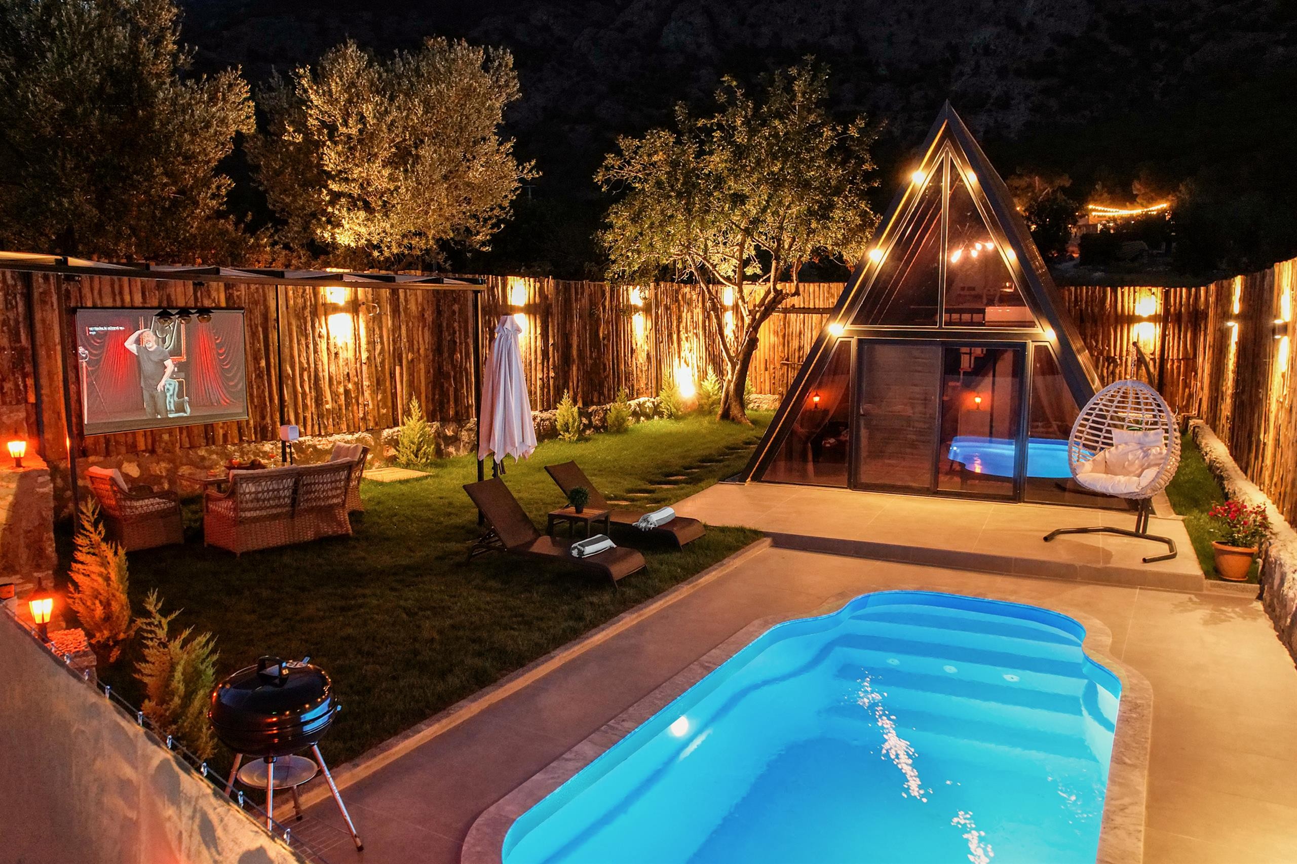 Pydnee evlerinde bahçede açık havada sinema keyfi yapmak burayı diğer tatil evlerinden ayıran en büyük ayrıcalıklarından birisidir. Açık hava sinemasında, yıldızların altında elinizde patlamış mısırınızla nostaljik bir akşam yaşayabilisiniz.